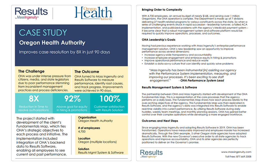 OHA turned to Mass Ingenuity and Results Software to measure performance, identify root causes, and track progress. Improvements were achieved in 90 days.